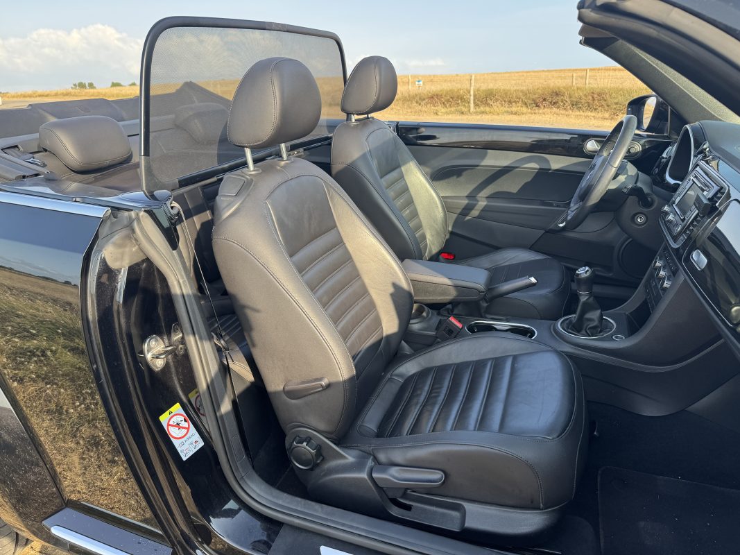 La version cabriolet apporte évidemment tout le charme supplémentaire : capote repliée, la Coccinelle devient un vrai véhicule “plaisir”, parfait pour profiter du soleil et de l’air frais. Capote fermée, elle conserve une atmosphère cosy et confortable, idéale pour rouler toute l’année. Cette double personnalité fait tout l’intérêt du modèle : une voiture plaisir, mais aussi une voiture utilisable au quotidien.